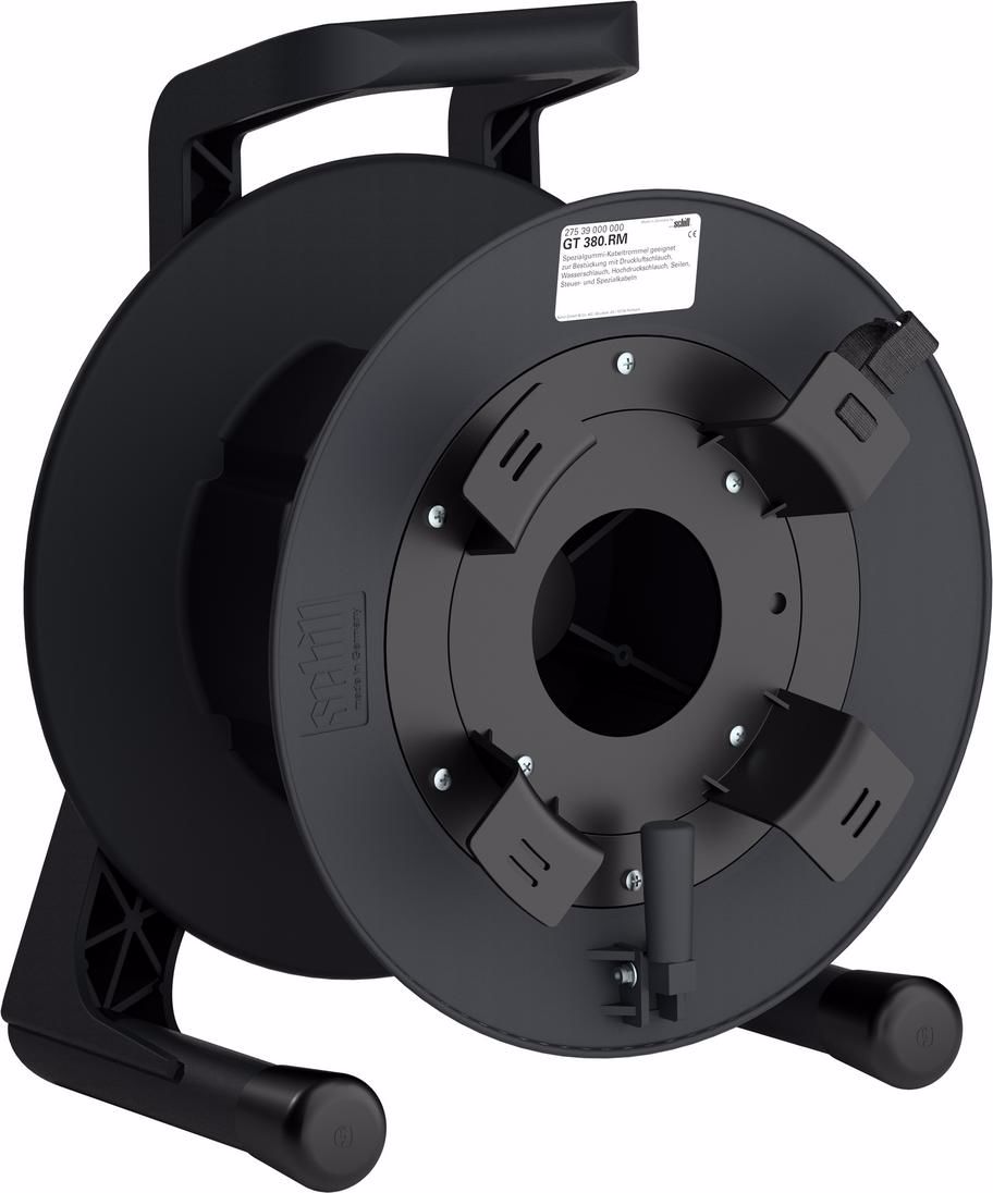 cable drum made of speciality rubber with auxiliary spool with velcro strap suitable to equip with pneumatic tubes, water hose, high pressure hoses, ropes, control and speciality cables