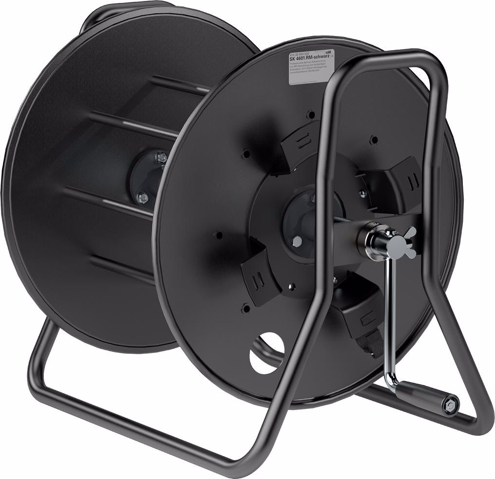 special steel sheet cable drum carriable with RM-cover for winding on both sides with 2-fold axle bearing and swivelling crank black colour
