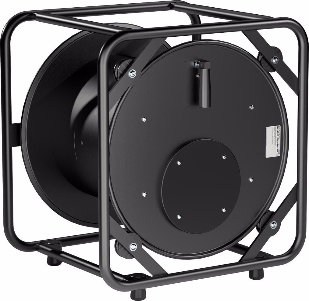 special steel sheet cable drum with blanking plate without sockets with 1 axle bearing and 1 outsided bearing with crank black colour