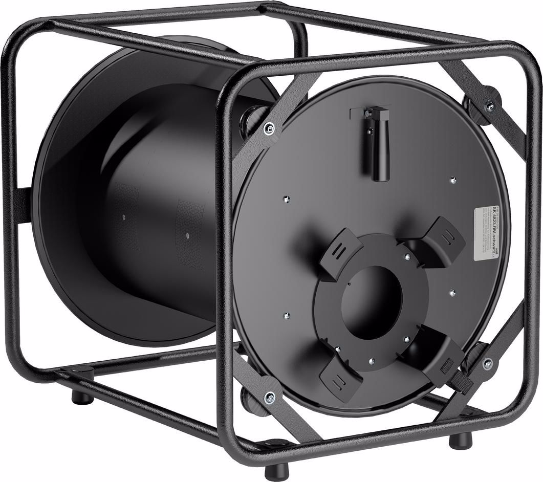 Professional stage cable drum with auxiliary spool for storing and safely transporting all types of lines and wires. Stacks with SK 4701 / SK 4731