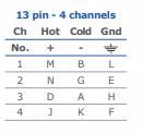 Female cable 13p M20, SHD - GOLD CRIMP + BLACK RUBBER RING