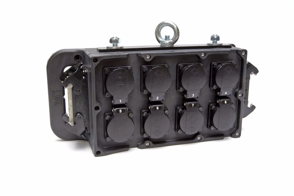 Output 8x Inbouwdoos Schuko 230V 16A 2p + penaarde IP44 zwart kleine flens